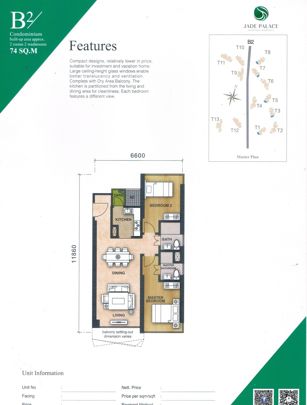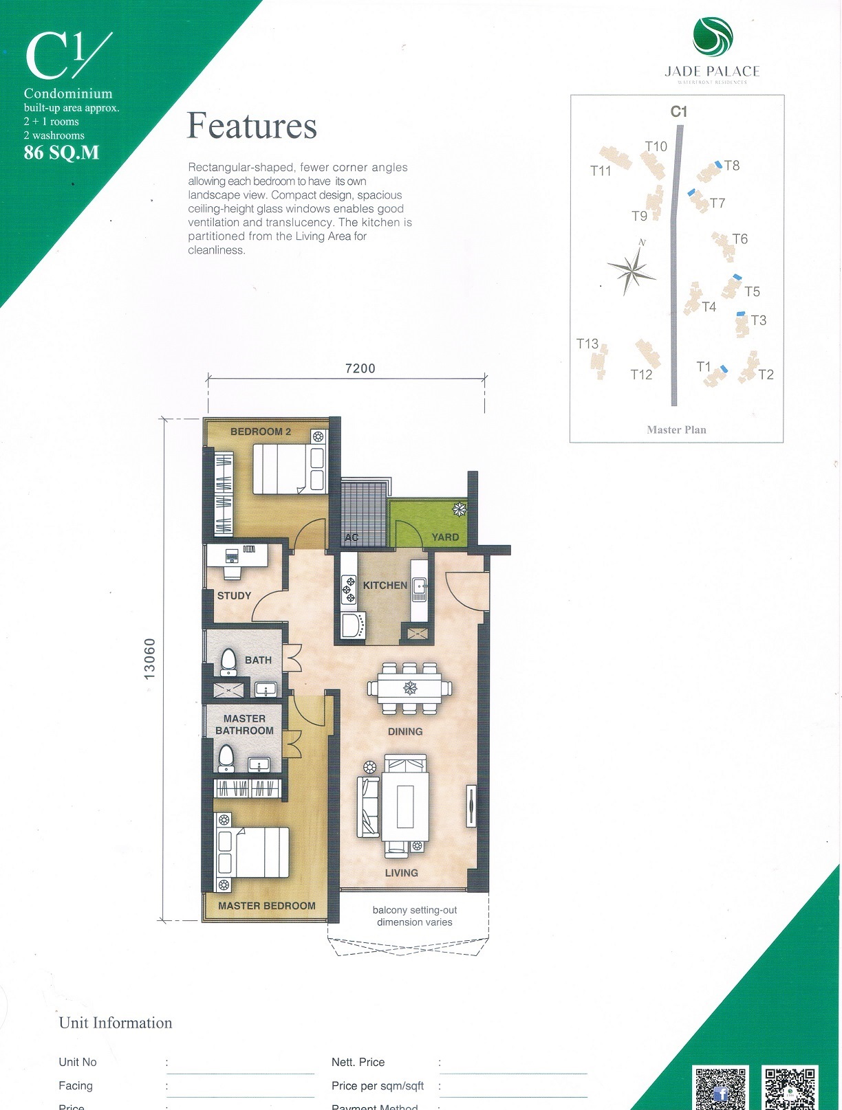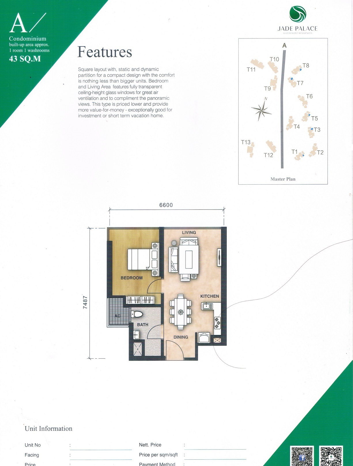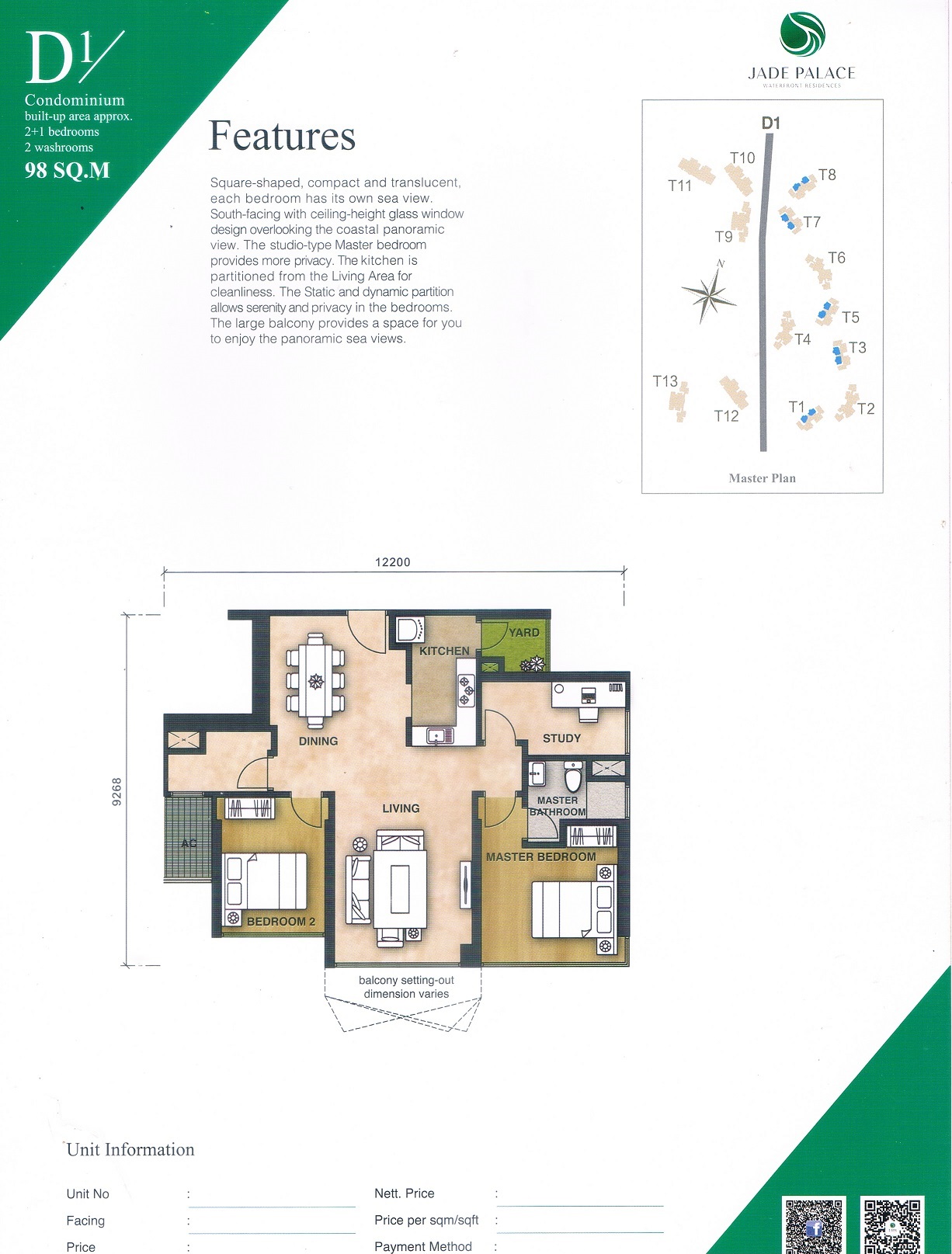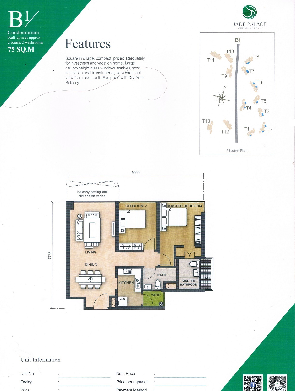 Enjoy facilities of advanced technology at Jade Palace that cater to your daily need, such as 24-hour security, butler services, an infinity pool, Themed Garden, Coastal Commercial Street, TCM Center and more.